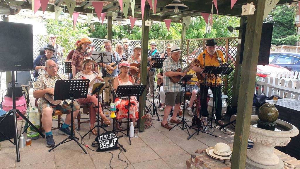 If you want to join in, bring yourself, a ukulele (or banjolele), a copy of our songbook (perhaps on a tablet) and something to prop your songbook/tablet up on.